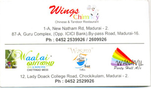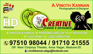 Ranjit, Thallakulam, MaduraiSubramani, East Masi Street, Madurai.